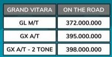 Berikut daftar harga mobil Suzuki Grand Vitara yang berlaku di bulan ini. Harga Suzuki Grand Vitara ini merupakan OTR Surabaya. Untuk informasi promo dan pemesanan mobil Suzuki Grand Vitara, hubungi :