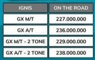 Berikut daftar harga mobil Suzuki Ignis yang berlaku di bulan ini. Harga Suzuki Ignis ini merupakan OTR Surabaya. Untuk informasi promo dan pemesanan mobil Suzuki Ignis, hubungi :